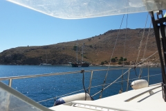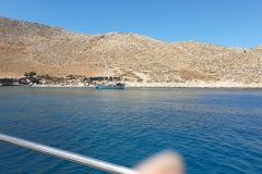 Eigentlich wollten wir heute wieder in die Bucht von vorgestern, da Wind und Wellen nicht so gemütlich waren, haben wir entlang Pserimos weitergesucht und sind dann an der Südspitze fündig geworden. Die Bucht ist zwar von einigen Gülets belegt, die wissen halt auch, wo es schön ist, aber wenn die weg sind, kann es ganz schön und ruhig werden.